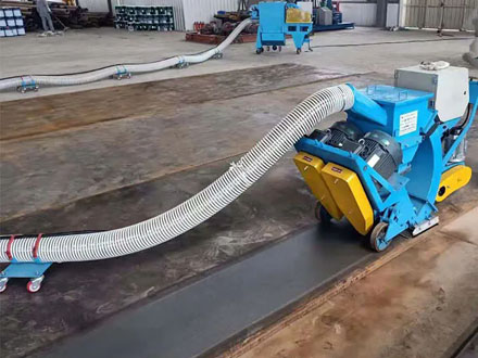 1、將移動式鋼板拋丸機放置在需要清理的鋼板上。